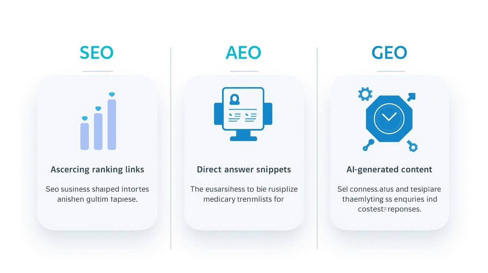 SEO is still the foundation. Your content might not even be found without optimizing it appropriately. However, after being so, AEO and GEO decide the manner of its presentation and use.